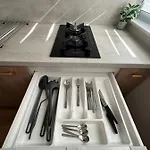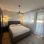 Apartamentul Panoramic Glamour, cu o suprafață de 60 m², este situat chiar în centrul Bucureștiului și se află la 14 minute de mers pe jos de bucătăria românească.
