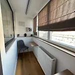 Panoramic Glamour Apartment 布加勒斯特位于1区,毗邻罗马尼亚雅典娜神庙,距离赫拉斯特劳公园有10分钟车程. 这套公寓有大厨房,客人可以在这边做饭.客房配有阳台,卫星频道平板电视 和气候控制.